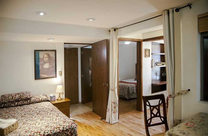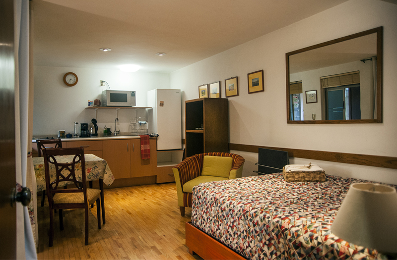 Margrit cuenta con 32.25 mts2, pisos de parqué, recamara, con pantalla TV de 32 pulgadas, Cama Queen Size (1 o 2 personas) dos burós, repisa de trabajo con silla y, amplio Closet con caja de seguridad. Cuenta con cocina y sala- comedor o segundo dormitorio con cama matrimonial (1 o 2 personas extra), un cómodo y funcional baño con ducha. Tabla de planchar y plancha en el cuarto.